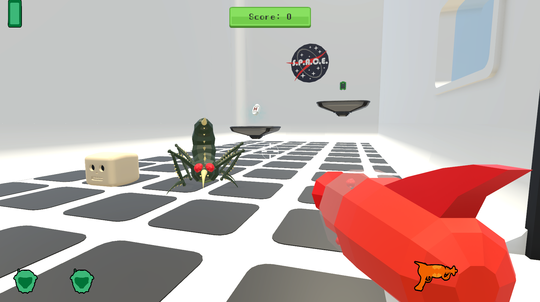 This was the first interactive project from CAS 117, and it consisted of a top down arcade shooter. This was the first project where I had to develop a player controller and enemy AI, which was an important process to learn. I coded an enemy AI that would slowly approach the player until the player was in close range before lunging at them and pursuing at a high speed. I also made a stationary "turret" style enemy that forced the player to hide behind cover and dart out when the turret's weapon was on cooldown. This project taught me how to use pointers to detect player position and how to make unique behavior for enemy AI.